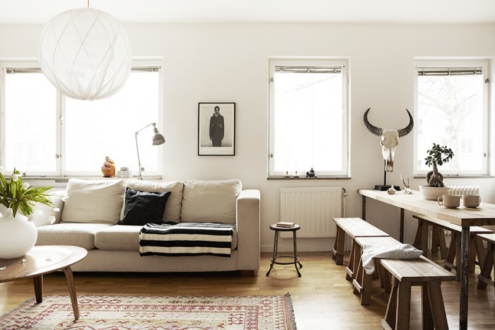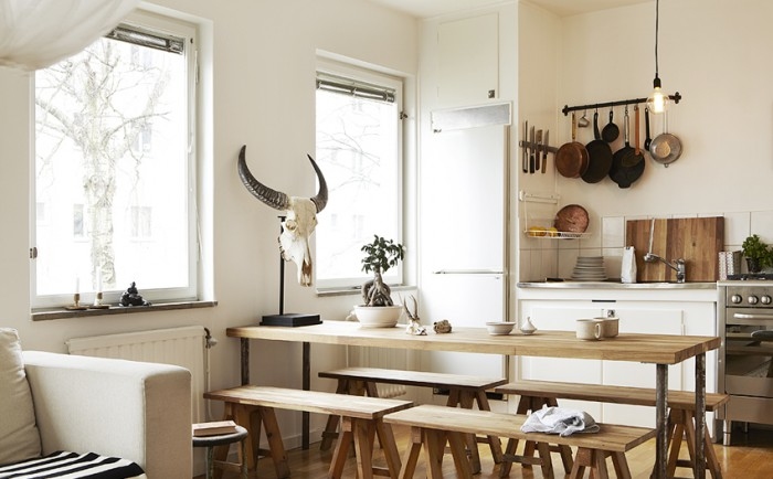 看看這間來自瑞典 Fantastic Frank 房仲網站的 10 坪原木風單身公寓,開放式的客餐廳,僅以一張長型原木餐桌為界,簡單俐落的外型搭配上古樸風格的板凳椅,日式風格油然而生,中性居家色調以及寬敞的空間感,讓人覺得很是舒適自在。家,不就該這樣子的嗎?