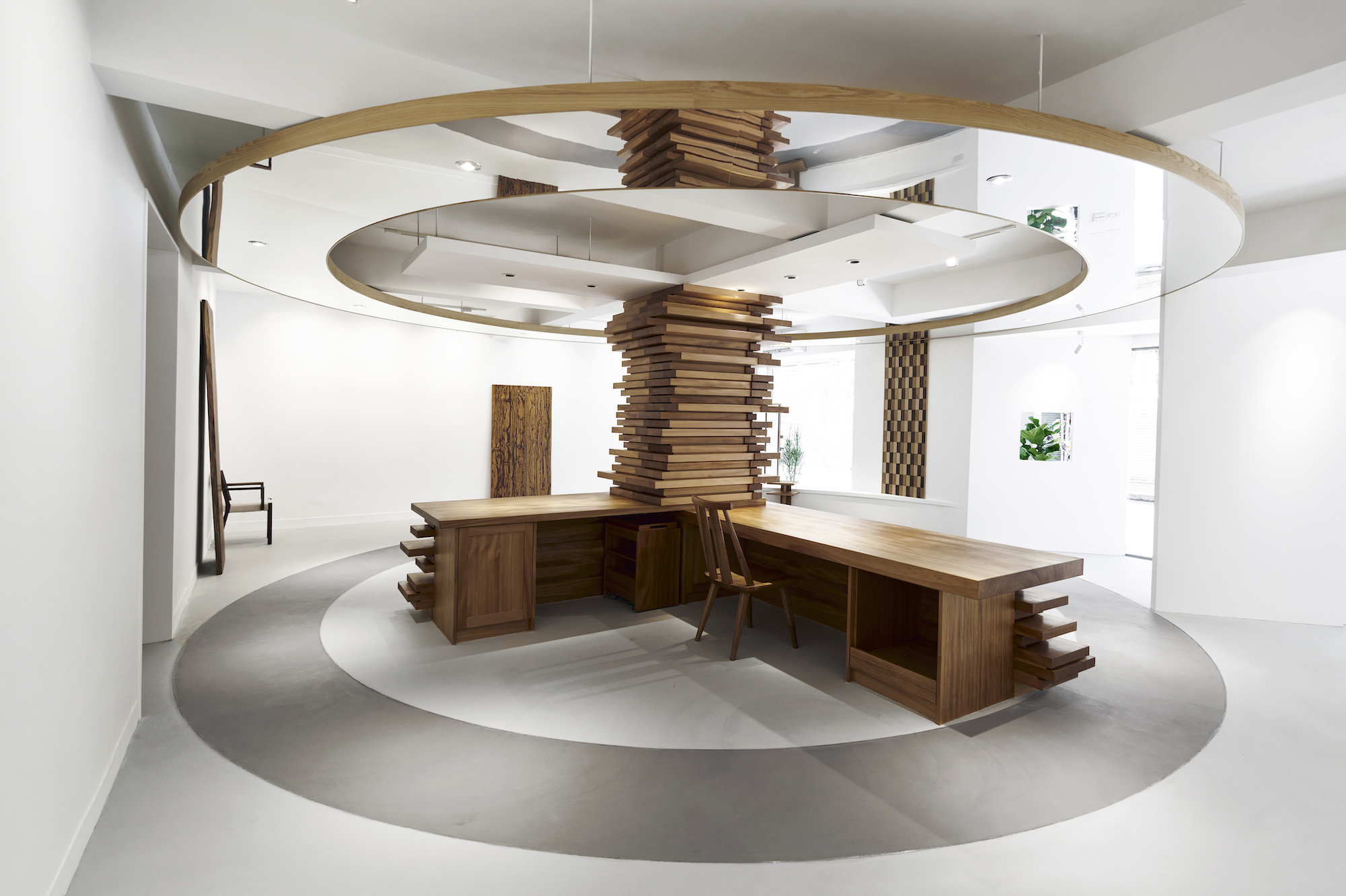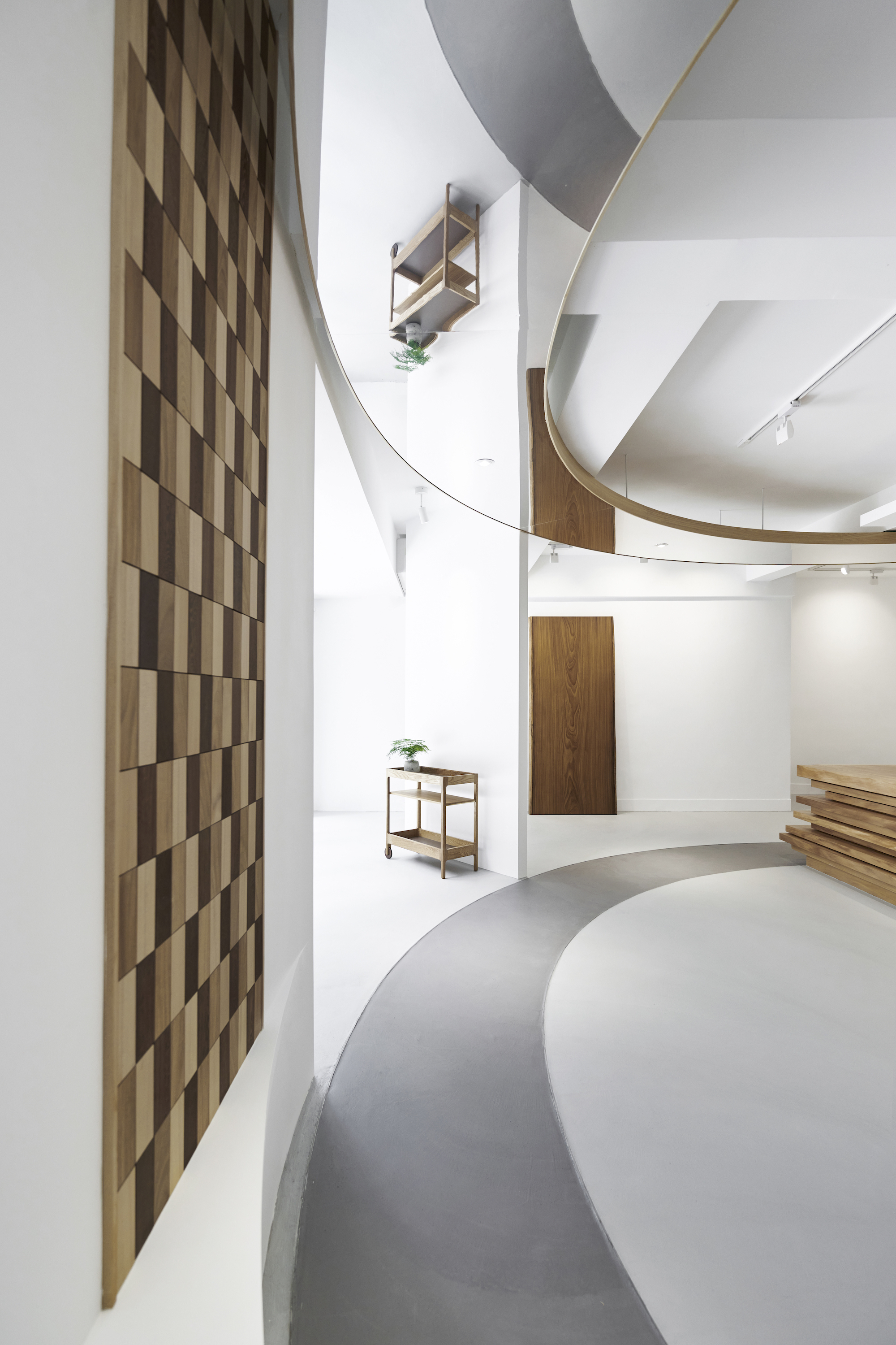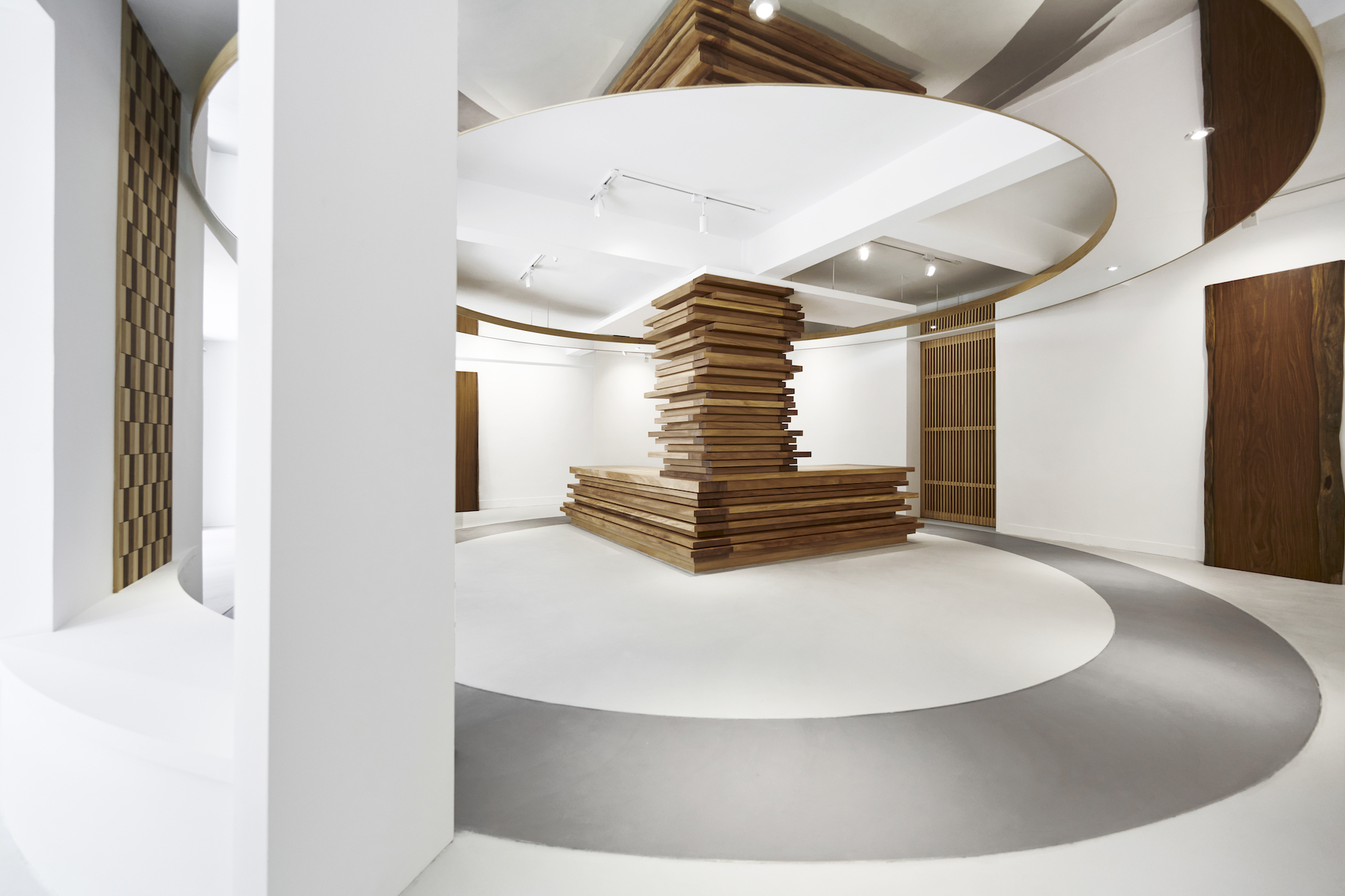 天花板與地板的圓弧造型,宛若樹木的年輪,訴說著樹的故事,而這片靜謐之地,即使位於繁華都市之心,也能讓人深切感受到純樸自然的生活質感。