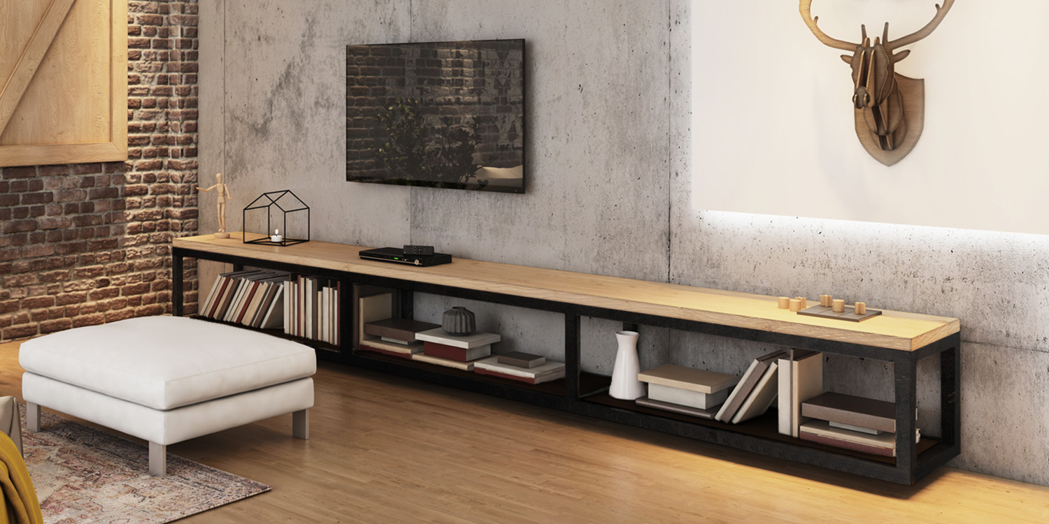 一塊原木,搭配簡約俐落的底座,就能擁有一個獨特的原木電視櫃。